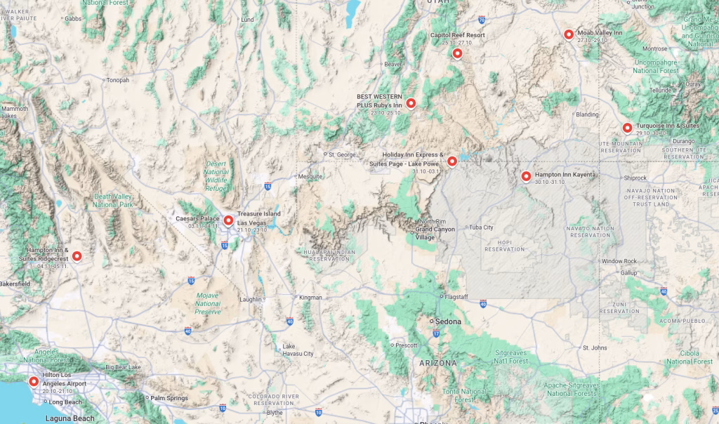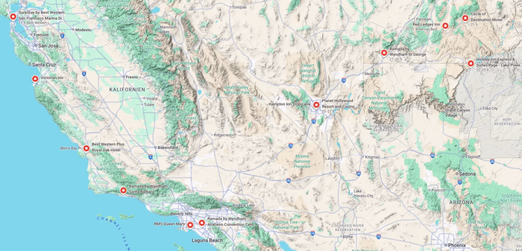 In 2014 lagen die folgenden Stationen auf der Route durch den Südwesten der USA…